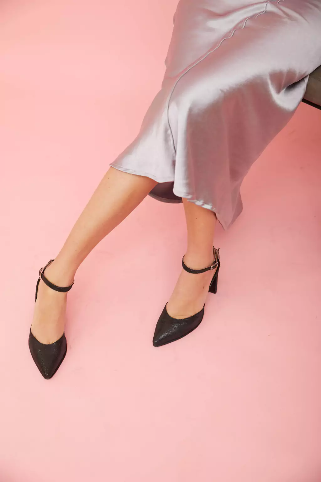 zapato chanel con talon y puntera confeccionado en cuero puntini. Forrado en cuero vacuno.